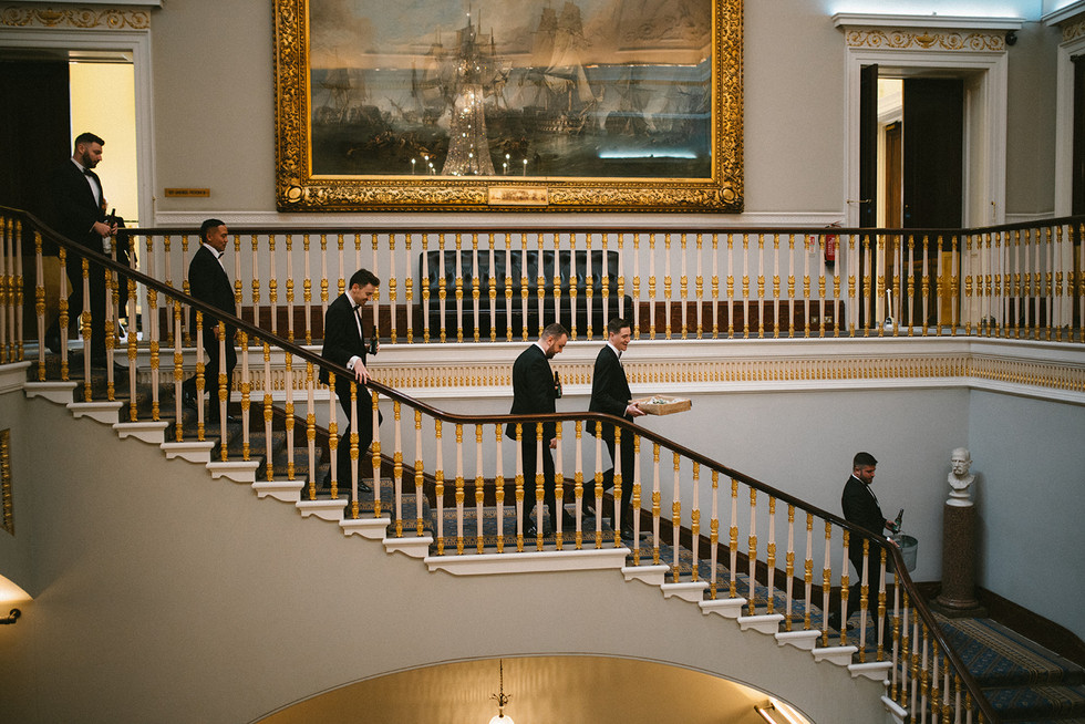 Starting the wedding morning by getting ready at the venue with their friends was a wonderful beginning to their day. While some couples choose not to see each other before the ceremony, Karen and Tim didn't mind and instead had a fun morning with their friends, followed by some special first look photos. This also gave them the opportunity to head out onto the London streets for their portrait and group shoots before the wedding. As a result, they could immediately celebrate and enjoy their wedding day with family and friends right after the ceremony.